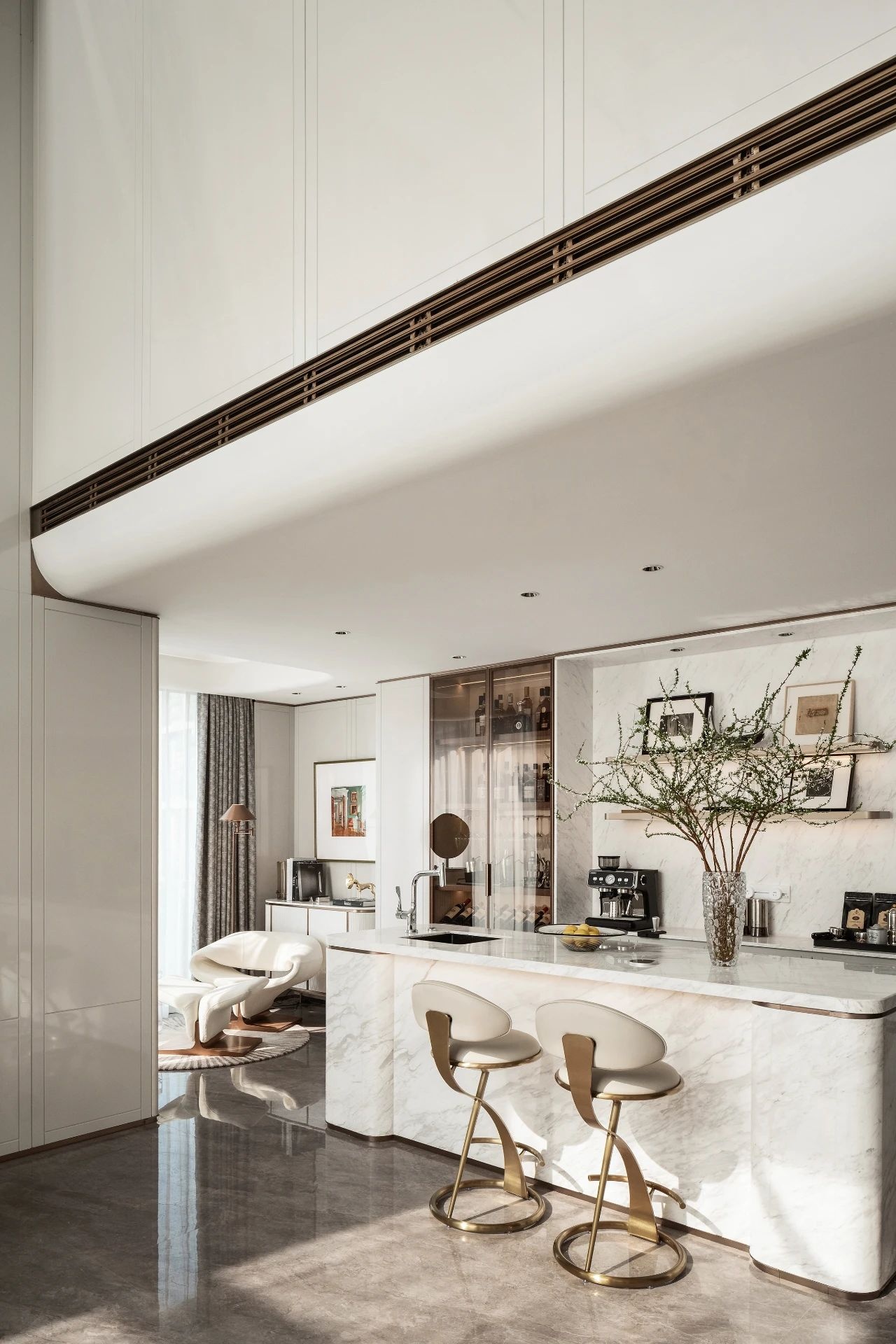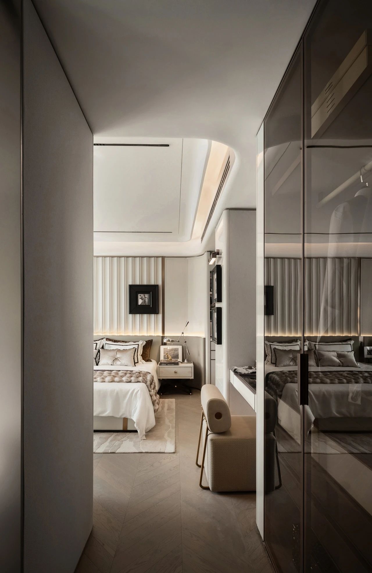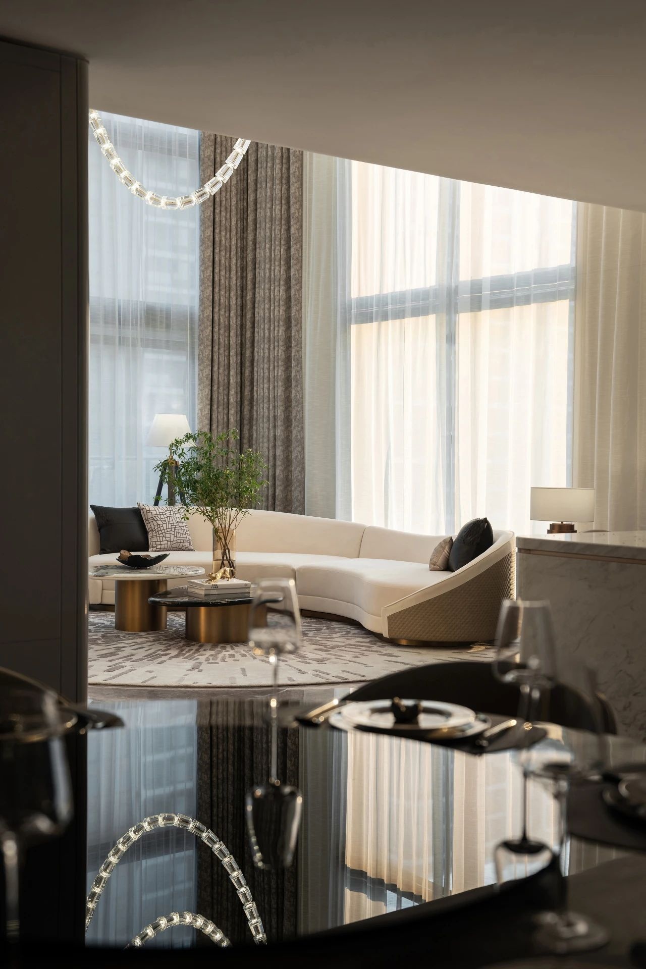 设计理念:豪宅并不是都以夸张和炫富为目的,它的设计仍从生活本身出发,以人为本,创造悦目、自在、丰富的空间体验,同时实现空间的个性、功能与个体价值观的契合。225户型有许多不同于市场上大多数大平层的空间特点,最显著的是,在平层里创造了墅感的特色。