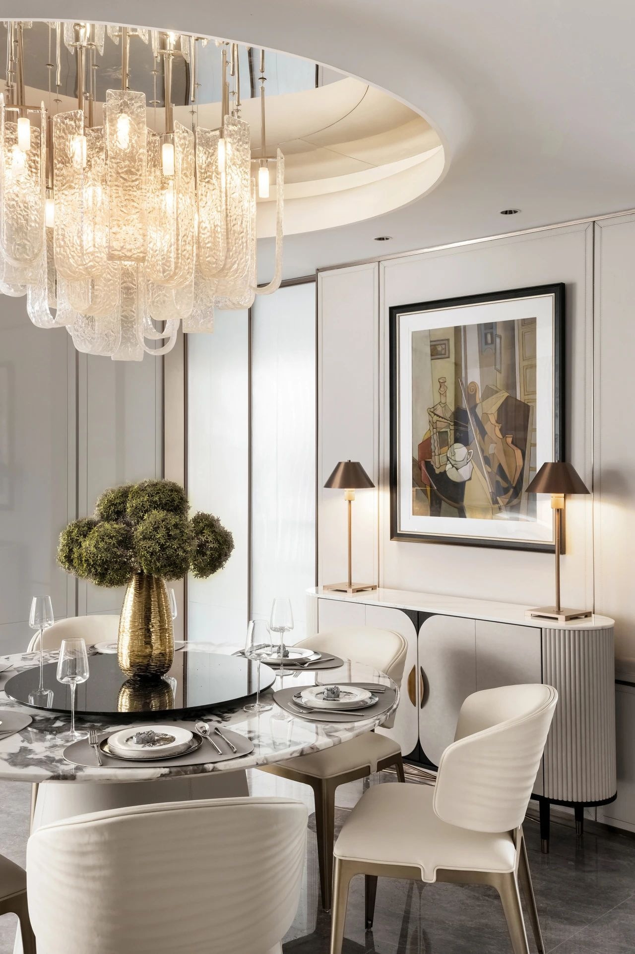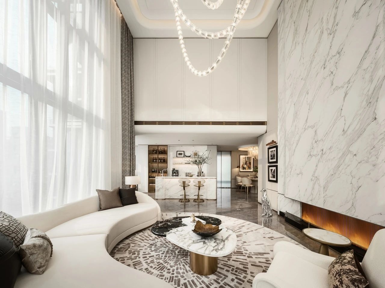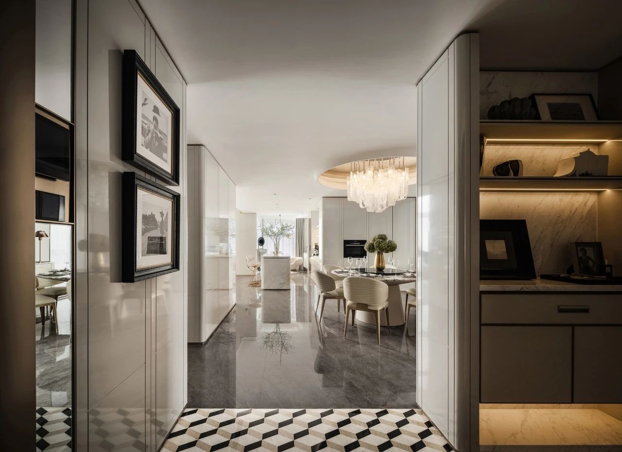 设计理念:豪宅并不是都以夸张和炫富为目的,它的设计仍从生活本身出发,以人为本,创造悦目、自在、丰富的空间体验,同时实现空间的个性、功能与个体价值观的契合。225户型有许多不同于市场上大多数大平层的空间特点,最显著的是,在平层里创造了墅感的特色。