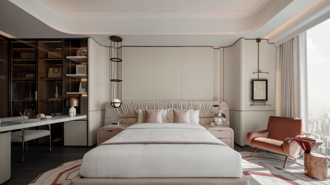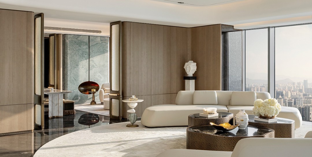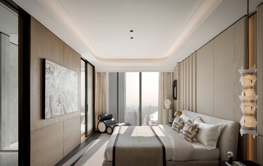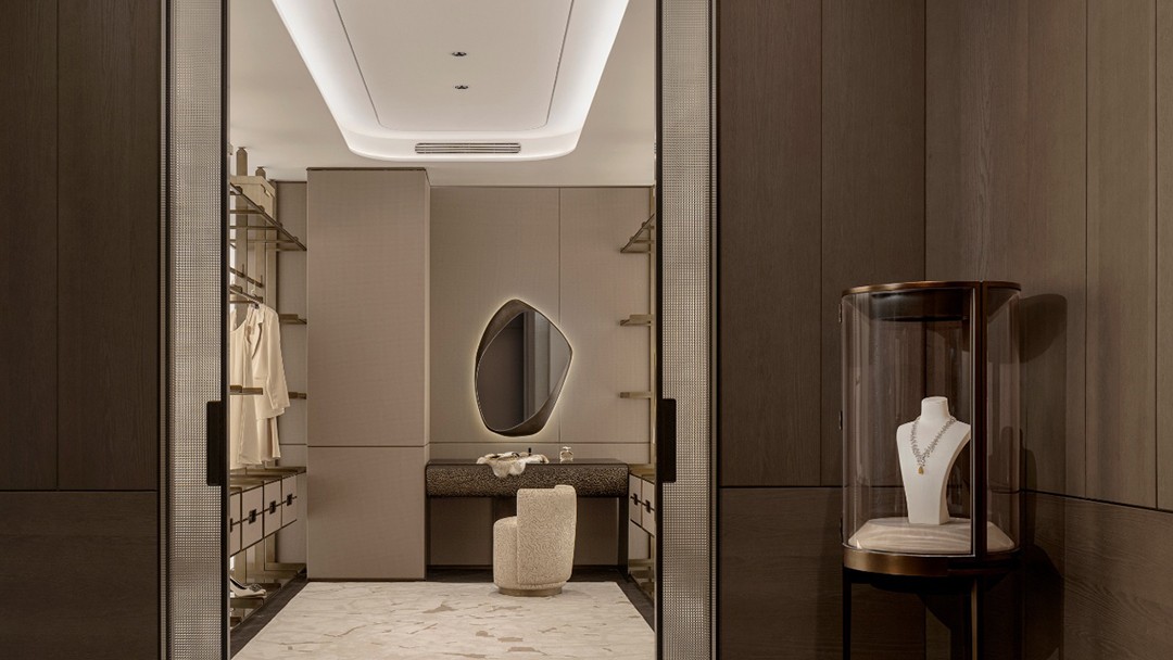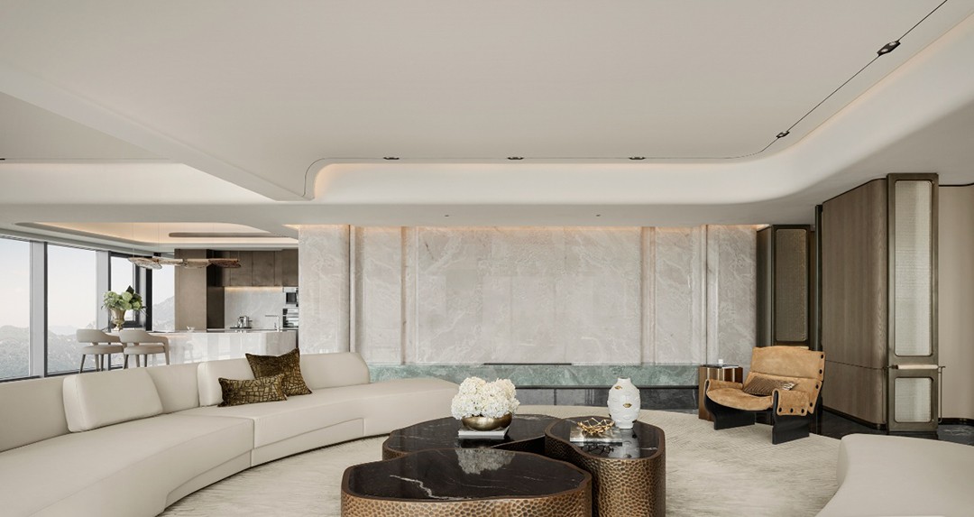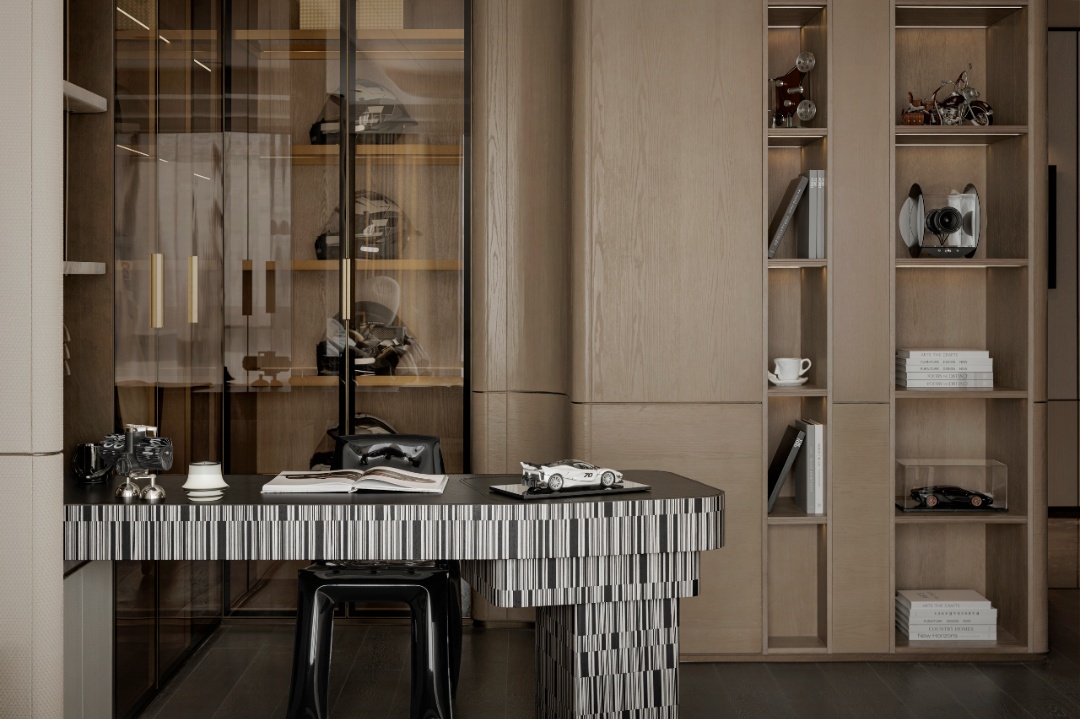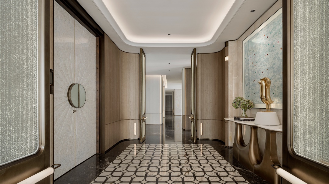 设计理念:玉石,作为这座空间的核心主题,为整个空间奠定了浅青色调的基调。设计师在色彩运用上极为克制,没有采用大面积的渲染,而是巧妙地借助原木色与各类玉质材质的搭配,如同精心调配的艺术调色板,将 “玉” 所特有的精致与剔透质感衬托得更加淋漓尽致。
