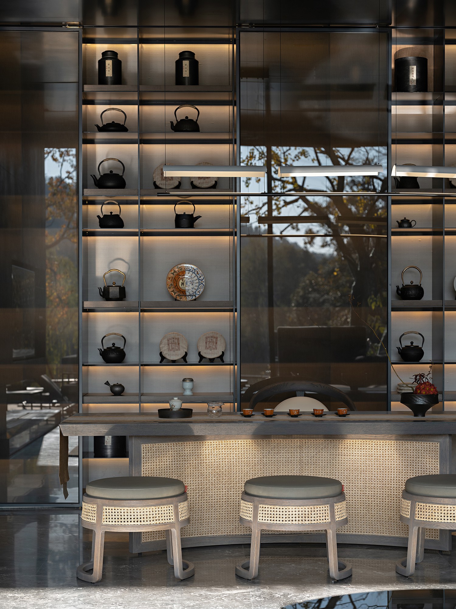设计理念:以艺术为纽带,激发这个时代更多的审美表达,传递精神共振。人云亦云的流行并不是趋势,而是通过独立思考创作的艺术品,会让人对人生的意义进行思考,并为之感动。在这个场景中,我们定义为天人合一的良渚《逍遥游》,深入沉浸其中,人、画、建筑都融于环境,一切成为自然一部分,从中找到内心的安静和纯粹。