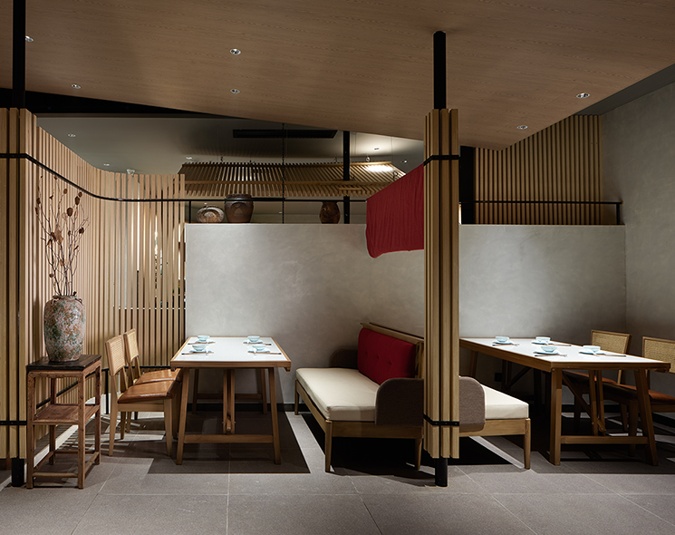 设计理念:餐厅装修设计兼顾功能性与美学表达,同时融合现代技术与文化传承。解决餐区收纳需求,避免物品堆积影响餐桌的多功能使用,通过品牌调性与空间设计强化顾客情感链接。