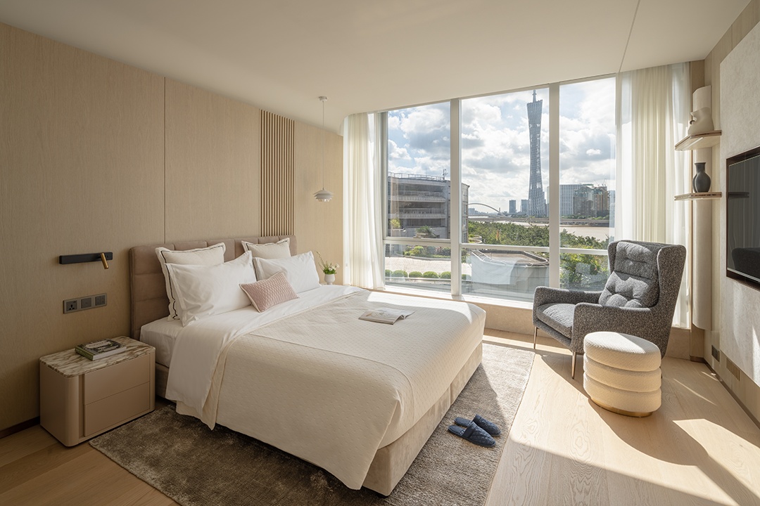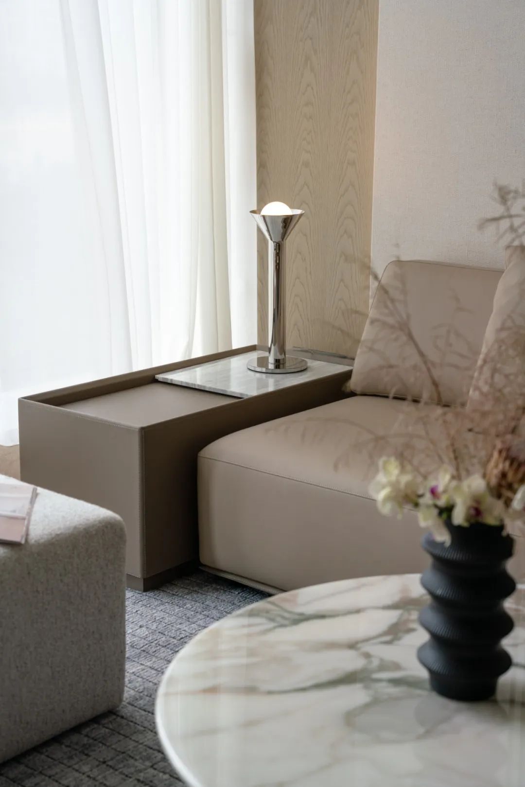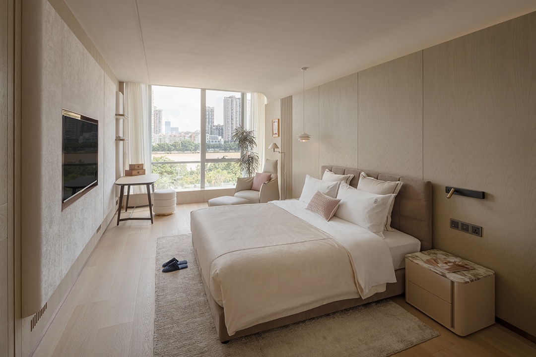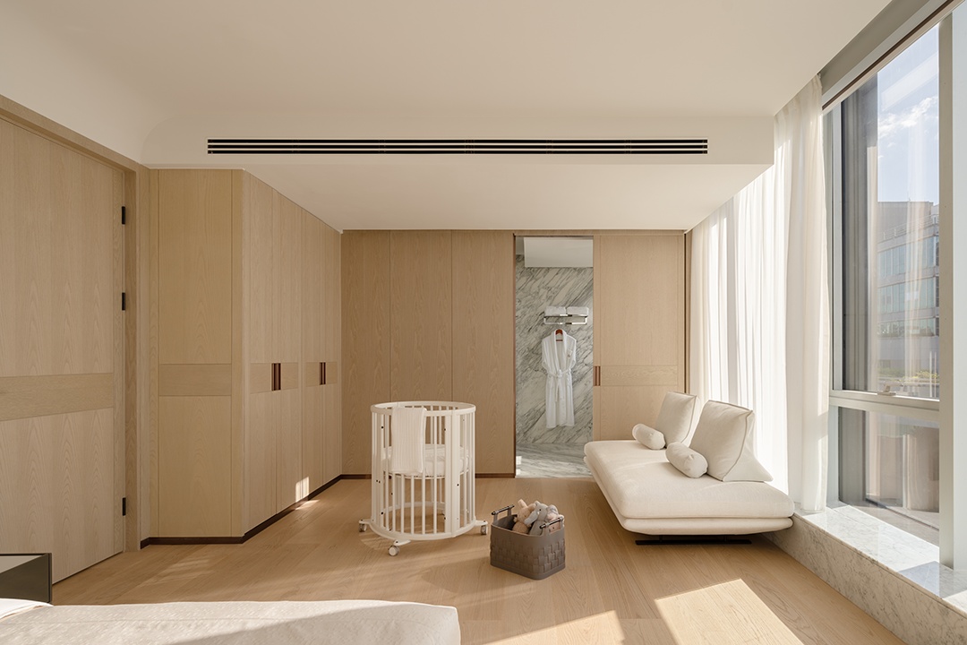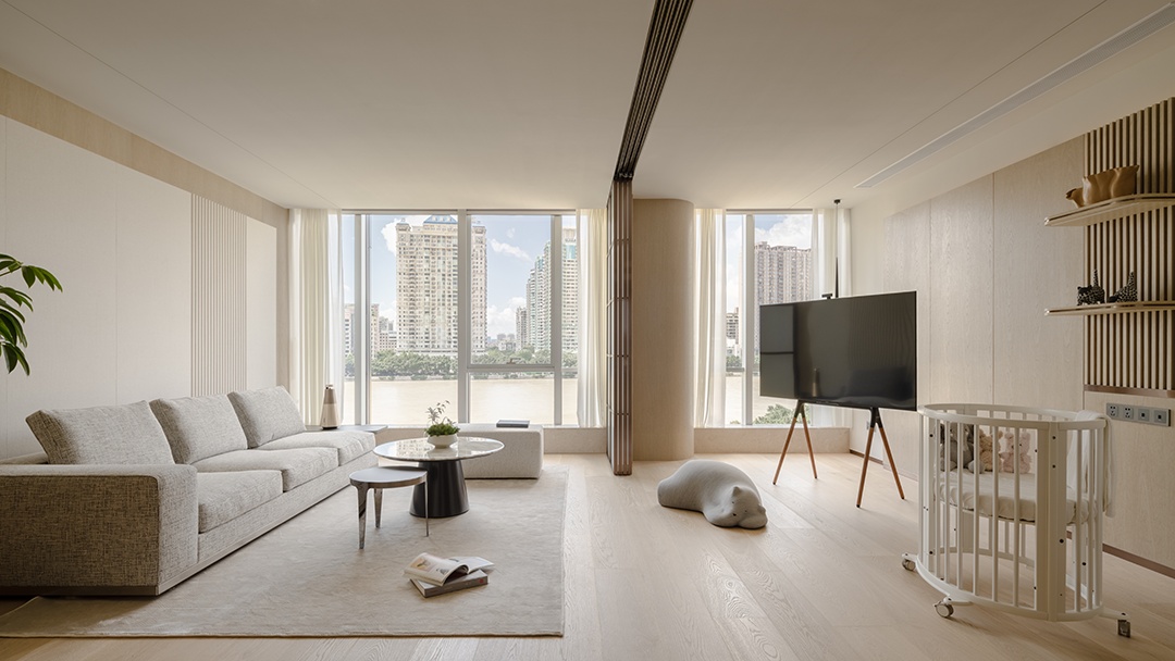 设计理念:遵循探索空间更多可能性的原则,从建筑、景观再到室内,尊重自然环境,并尝试将二沙岛这独特可贵的自然景色引入室内,让生活居所离自然更进一步,感受纯粹的身心放松和疗愈方式。大落地玻璃窗将外部的自然风景打开并化呈现,这是再多的人工配饰也无法比拟的。绿色代表着孕育生命与希望,带来平静的情绪,创造放松的基调,十分适合拥有新生儿和新生活的温暖新家。