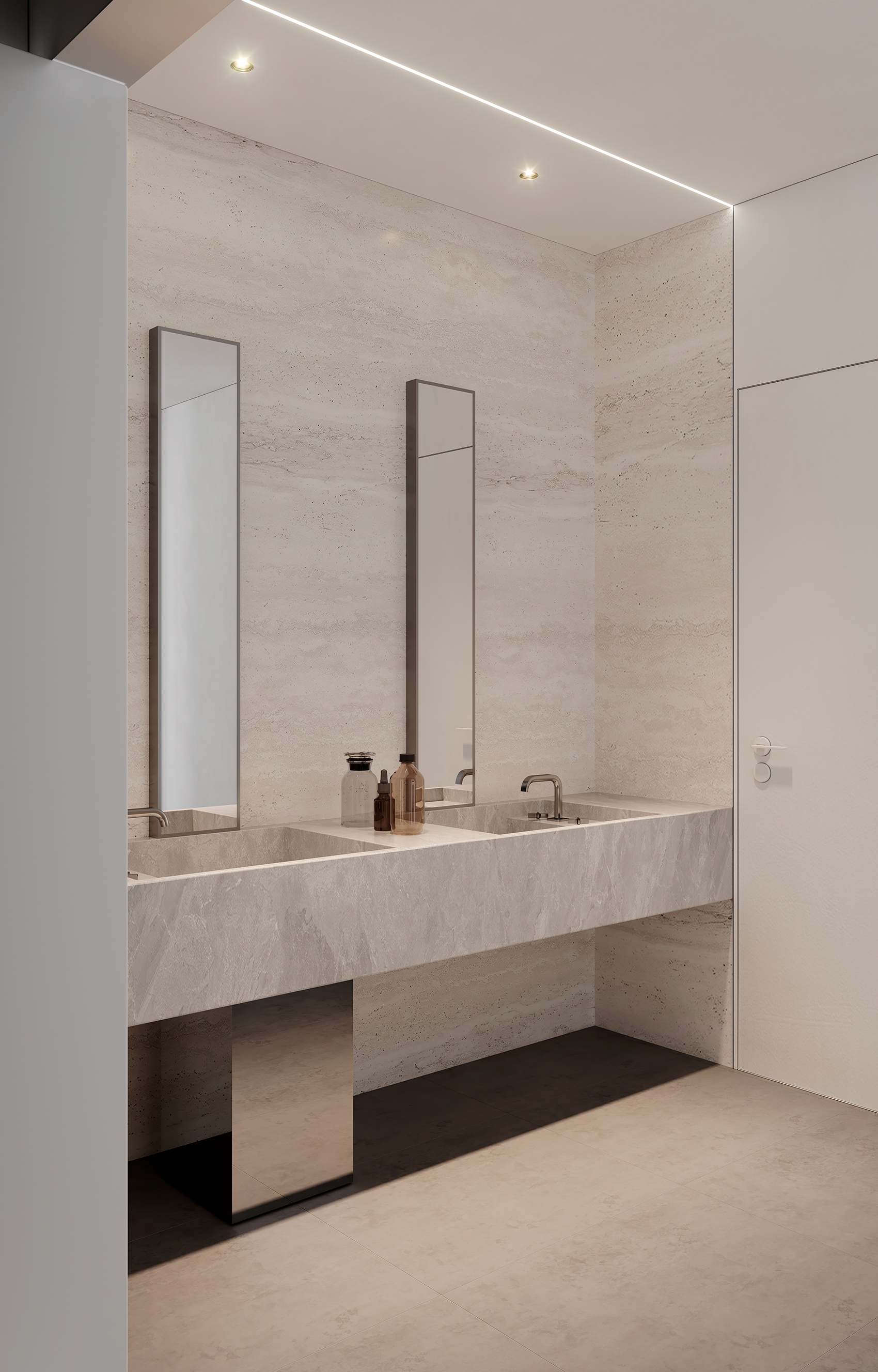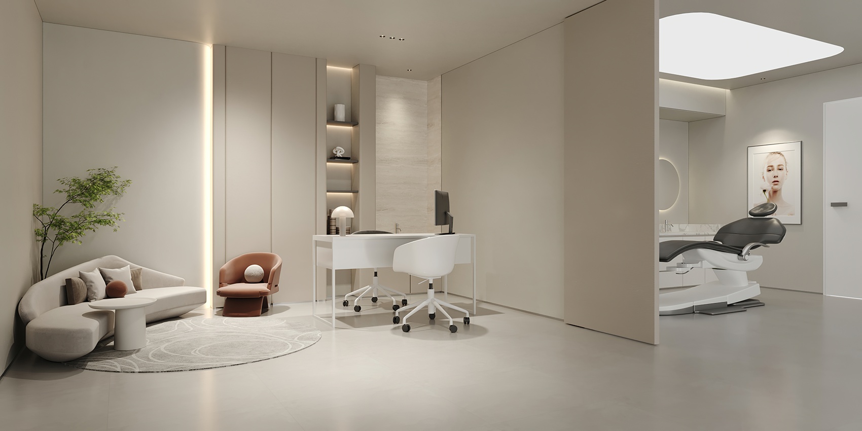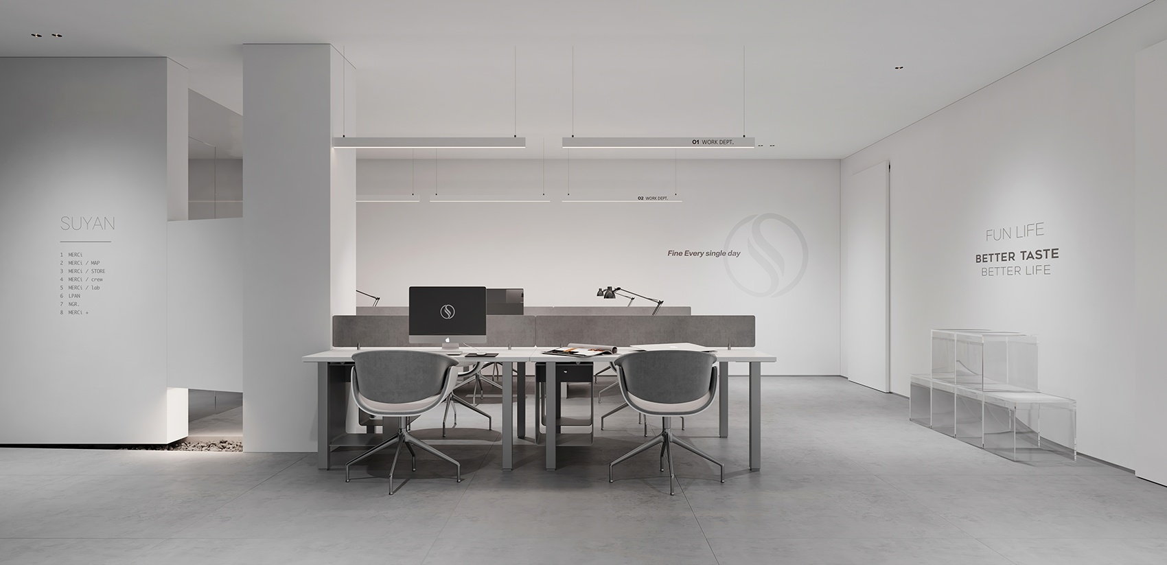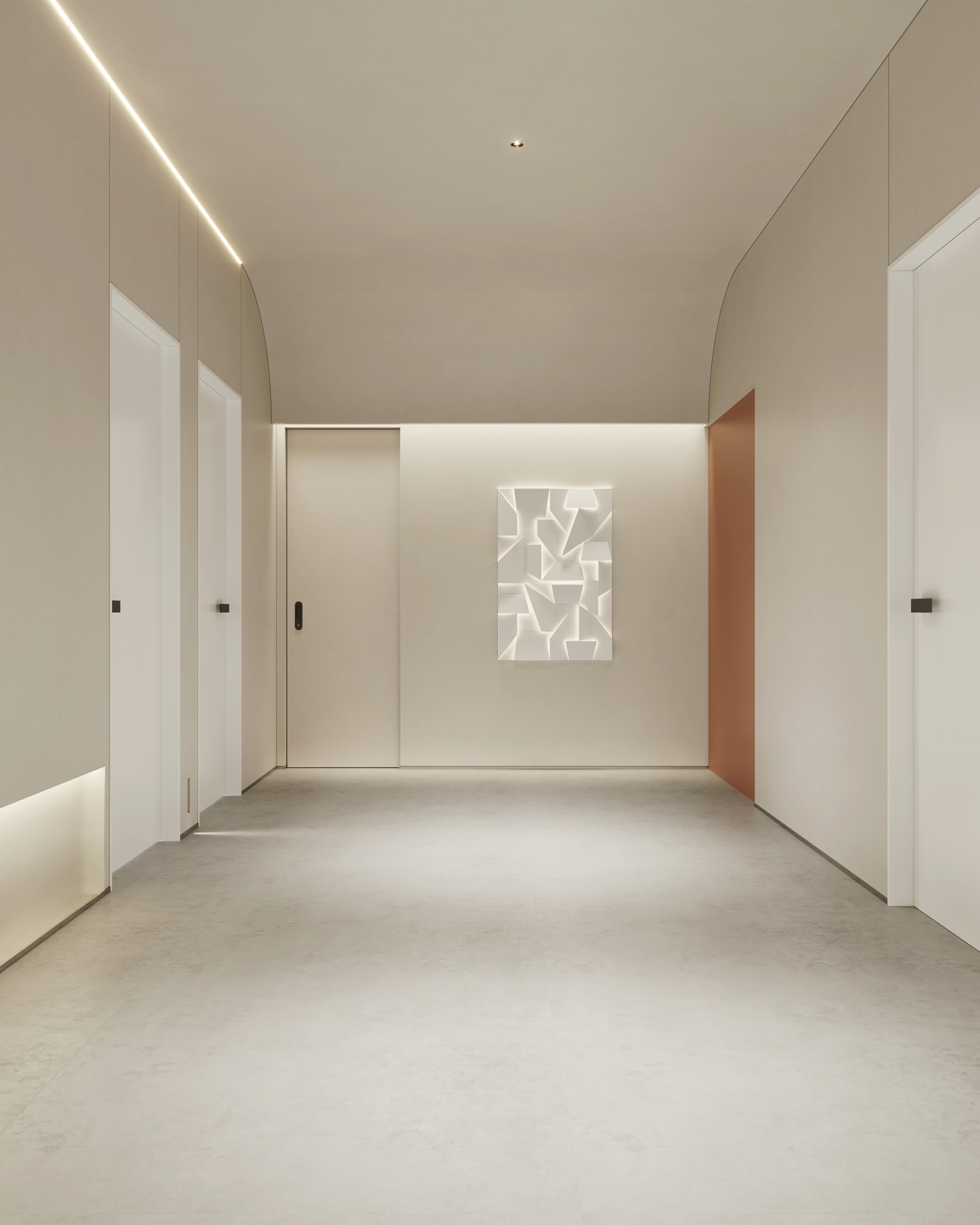 设计理念:空间以中性色调为主,没有强冲击力的色彩,以代表安全冷静的白色作为基础用色,加入知性的米灰色柔和空间,呈现出亲和舒适的质感。同时选用粉棕色来提亮空间,丰富视觉上的变化,从而使空间变得更有张力。