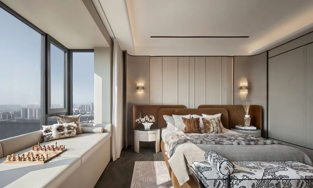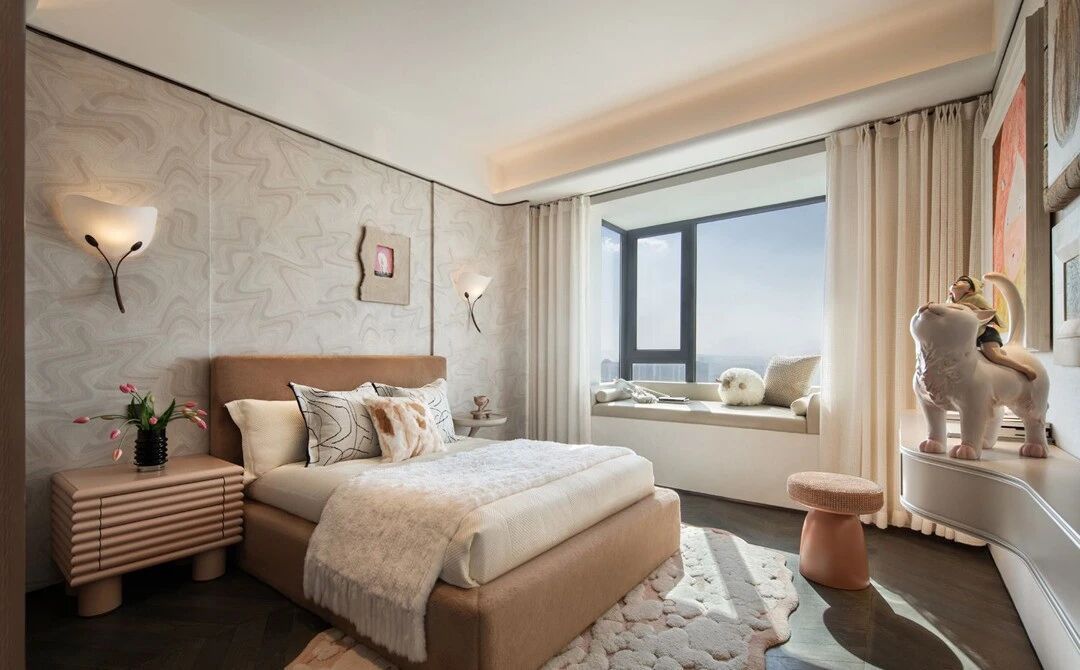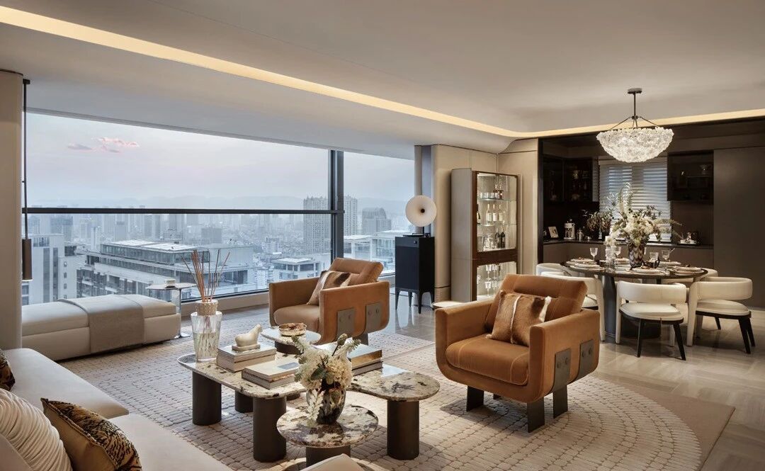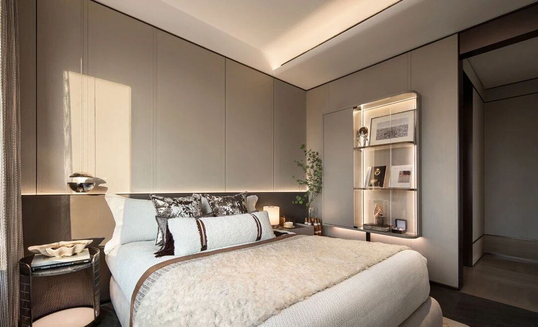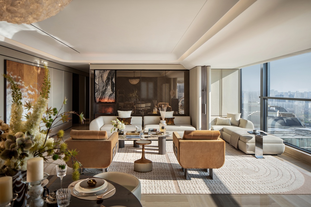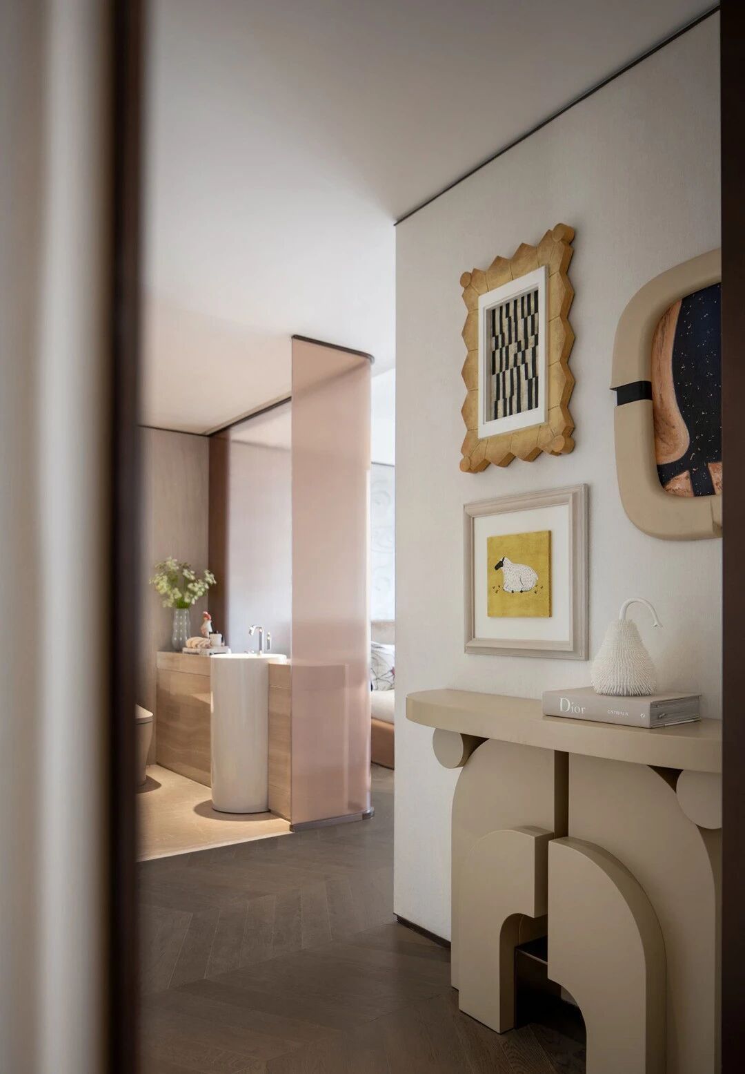 设计理念:设计师采用疏密得体的纹理打造相互克制的虚实节奏主题,仔细的呈现日常蓝图,配合细美的编织肌理和艺术注脚等赋予生活一种艺术解构。运用纯粹大理石打造玄关区域,在灰色衬托中彰显迂回灵动 的肌理,由此形成内外联动的经典标志。以轻松的留白处理赋予大客厅独特的“待客 ”气息。结合乌托邦式的理想概念,赋予第三角度视感一种端庄仪式感,从而根据传统礼仪和规律,呈现相对开放的包容性。