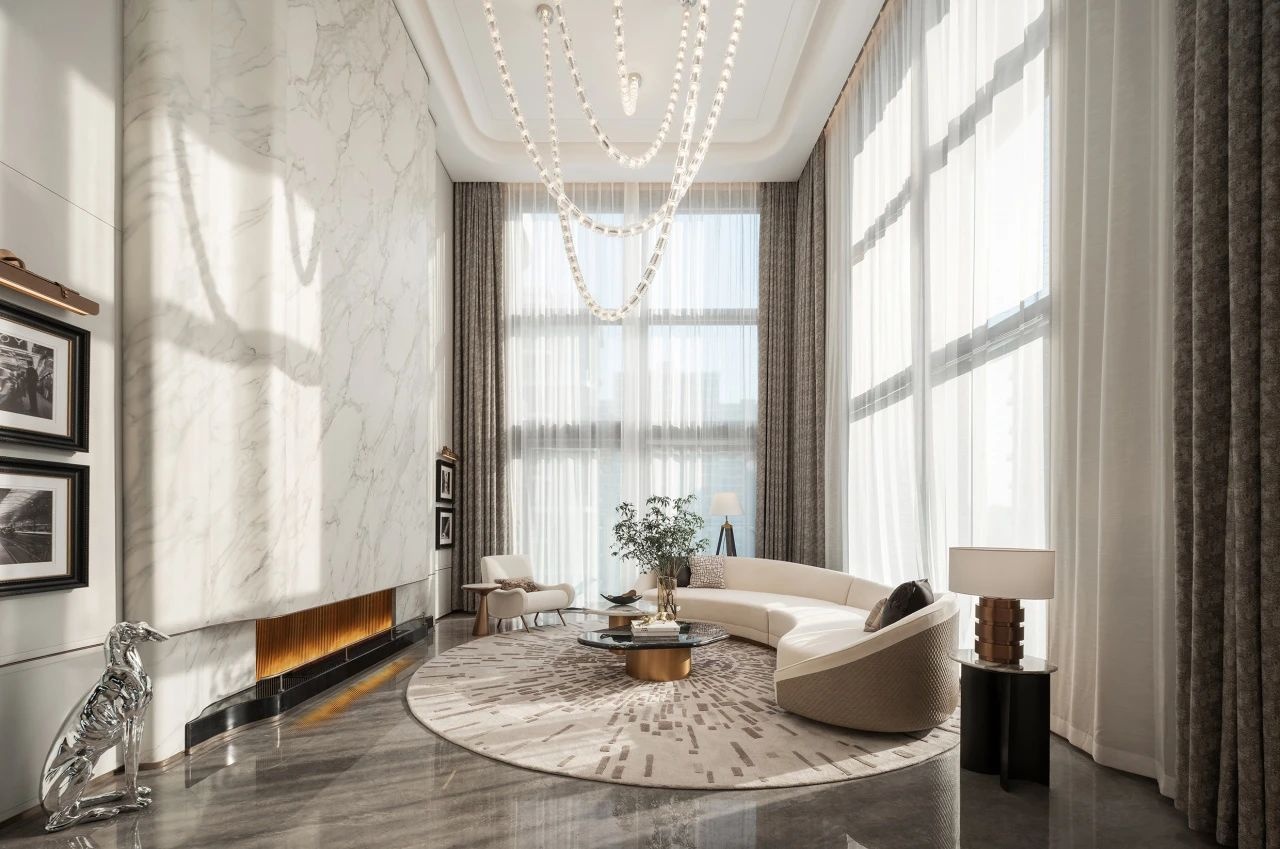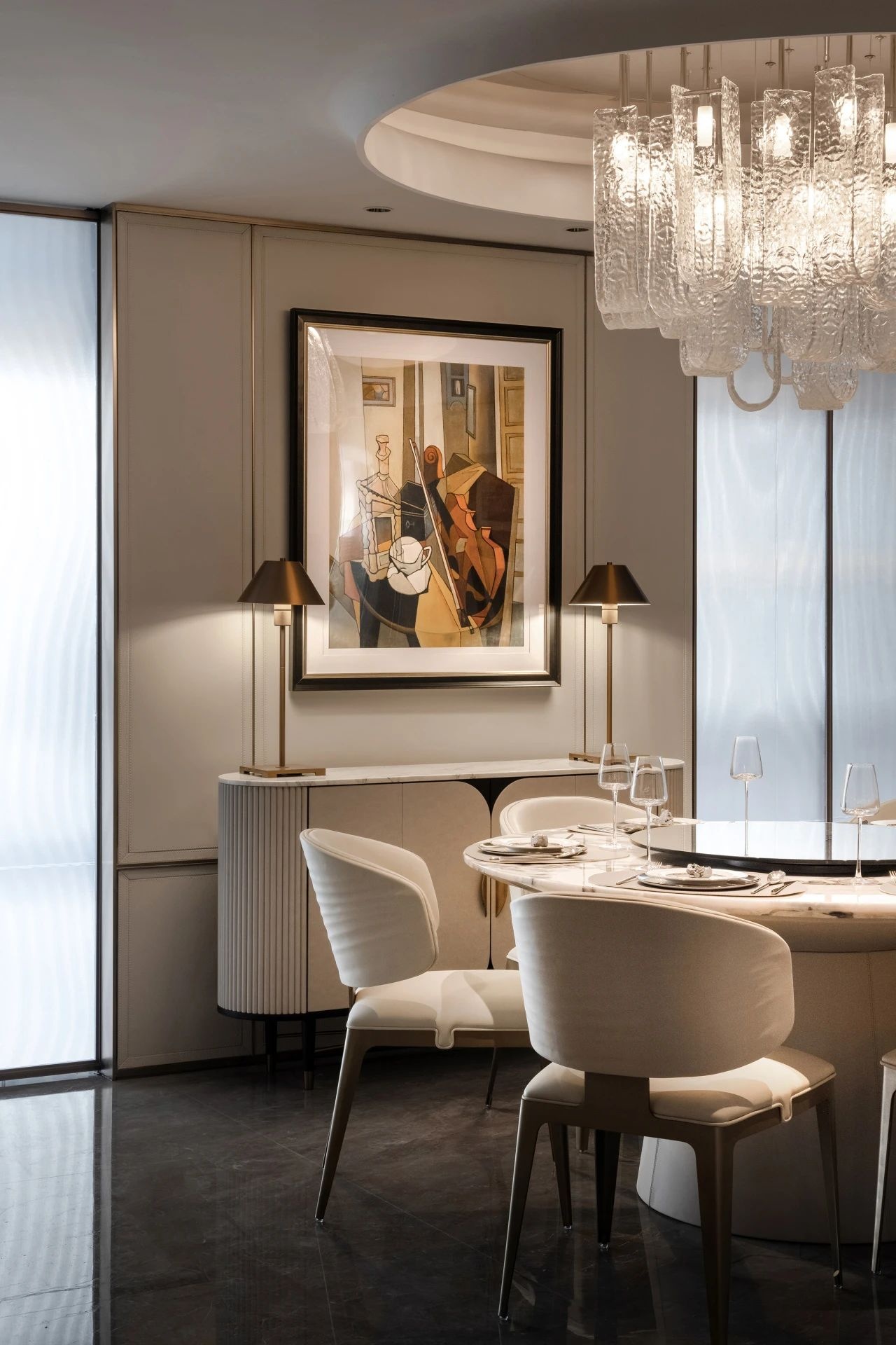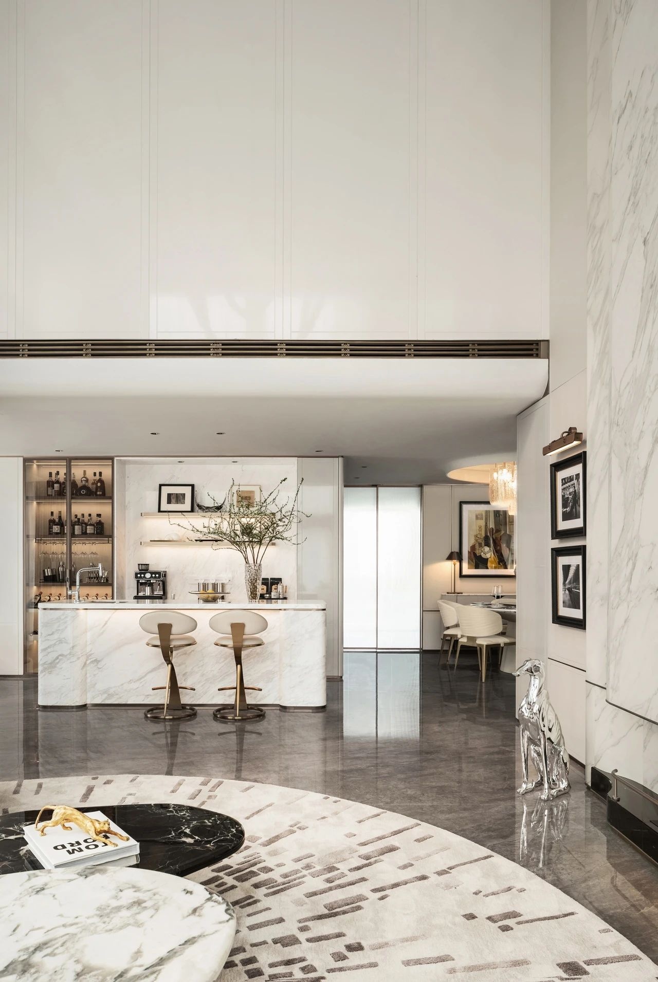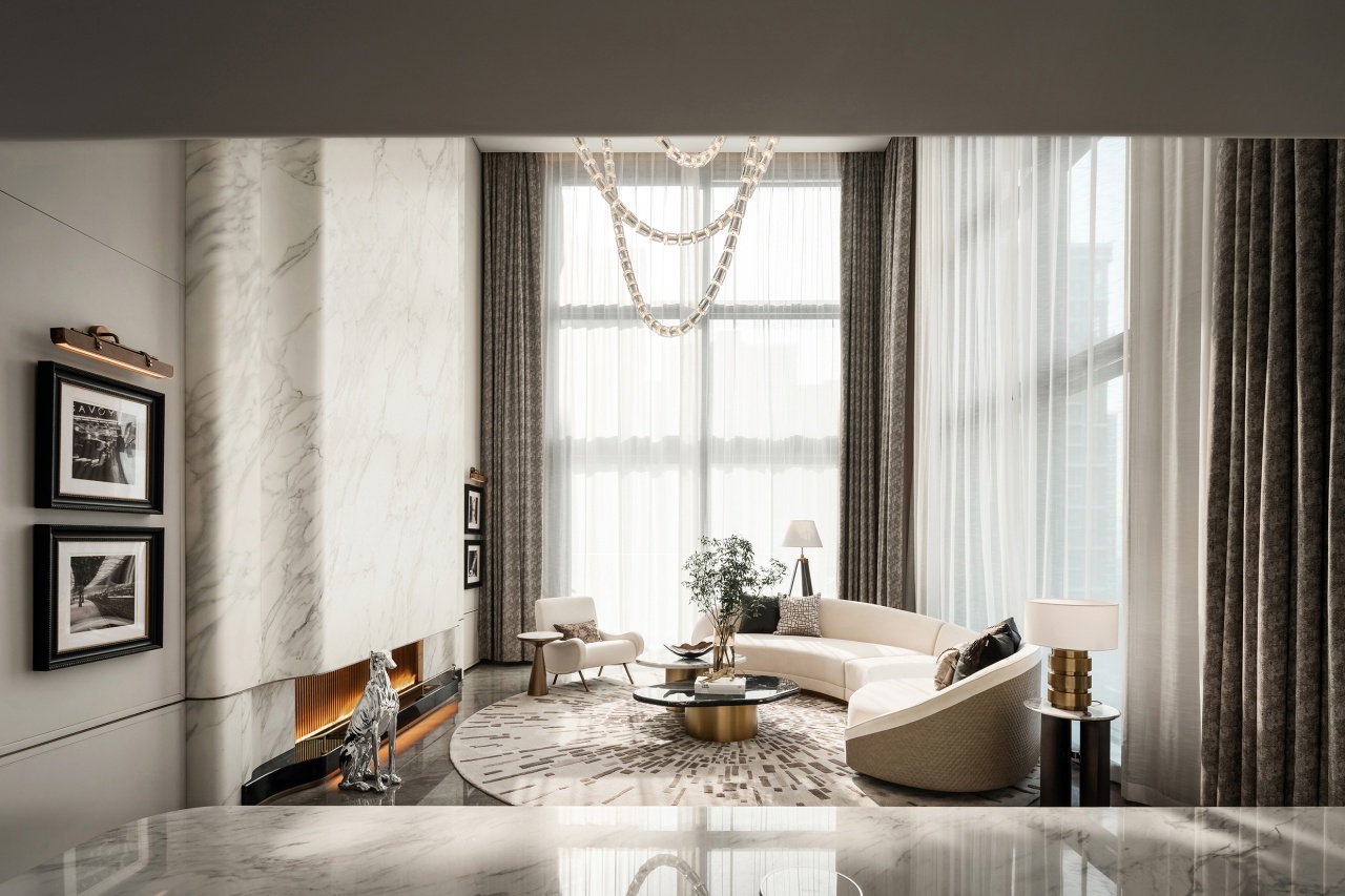 设计理念:豪宅并不是都以夸张和炫富为目的,它的设计仍从生活本身出发,以人为本,创造悦目、自在、丰富的空间体验,同时实现空间的个性、功能与个体价值观的契合。225户型有许多不同于市场上大多数大平层的空间特点,最显著的是,在平层里创造了墅感的特色。