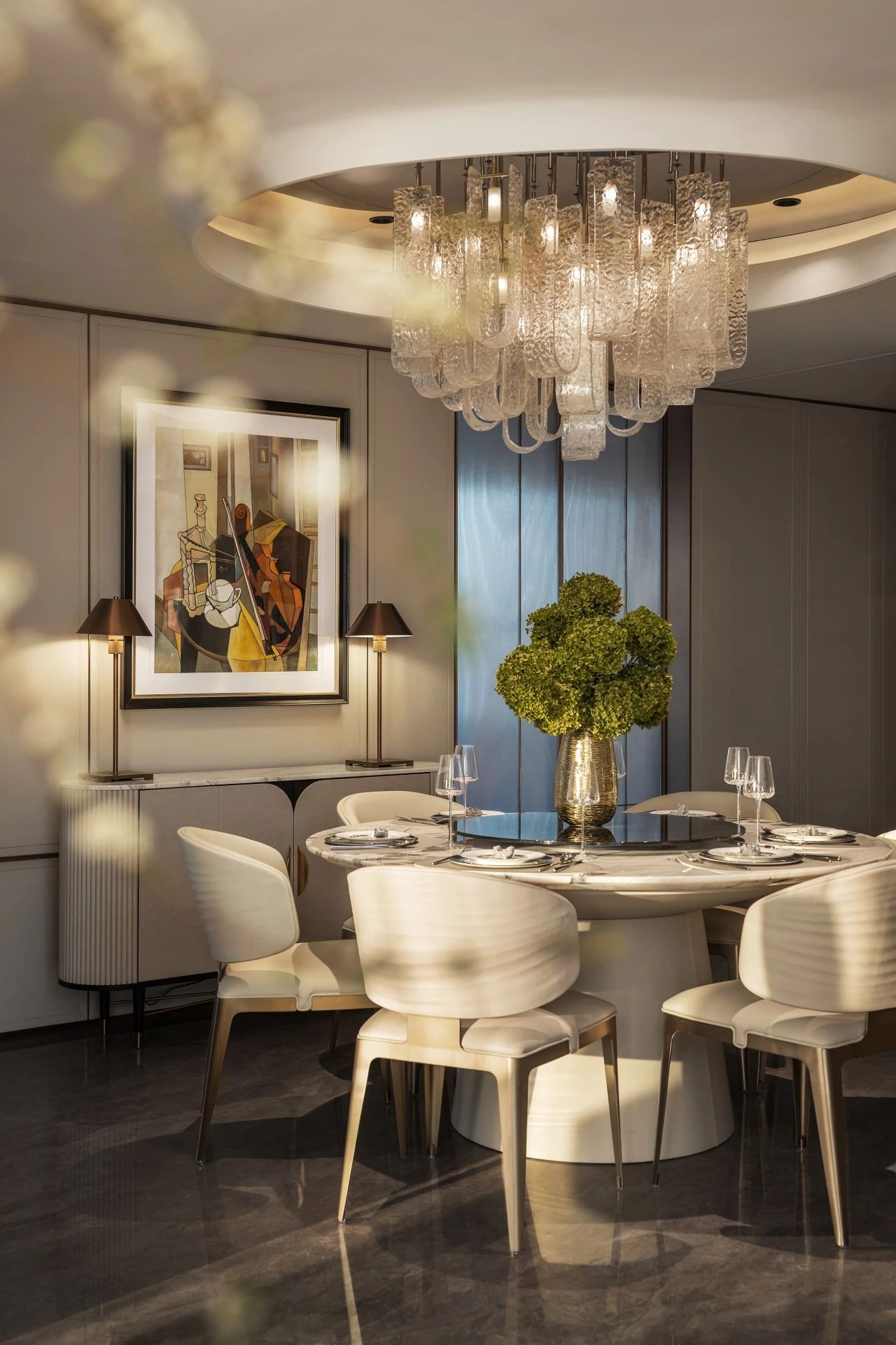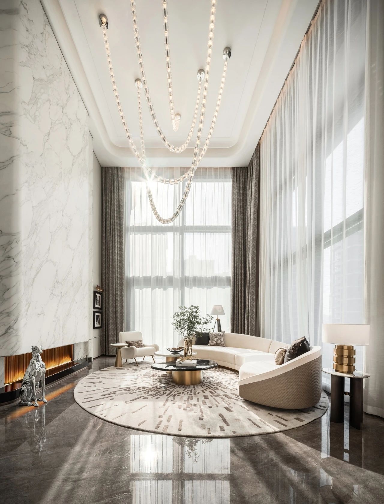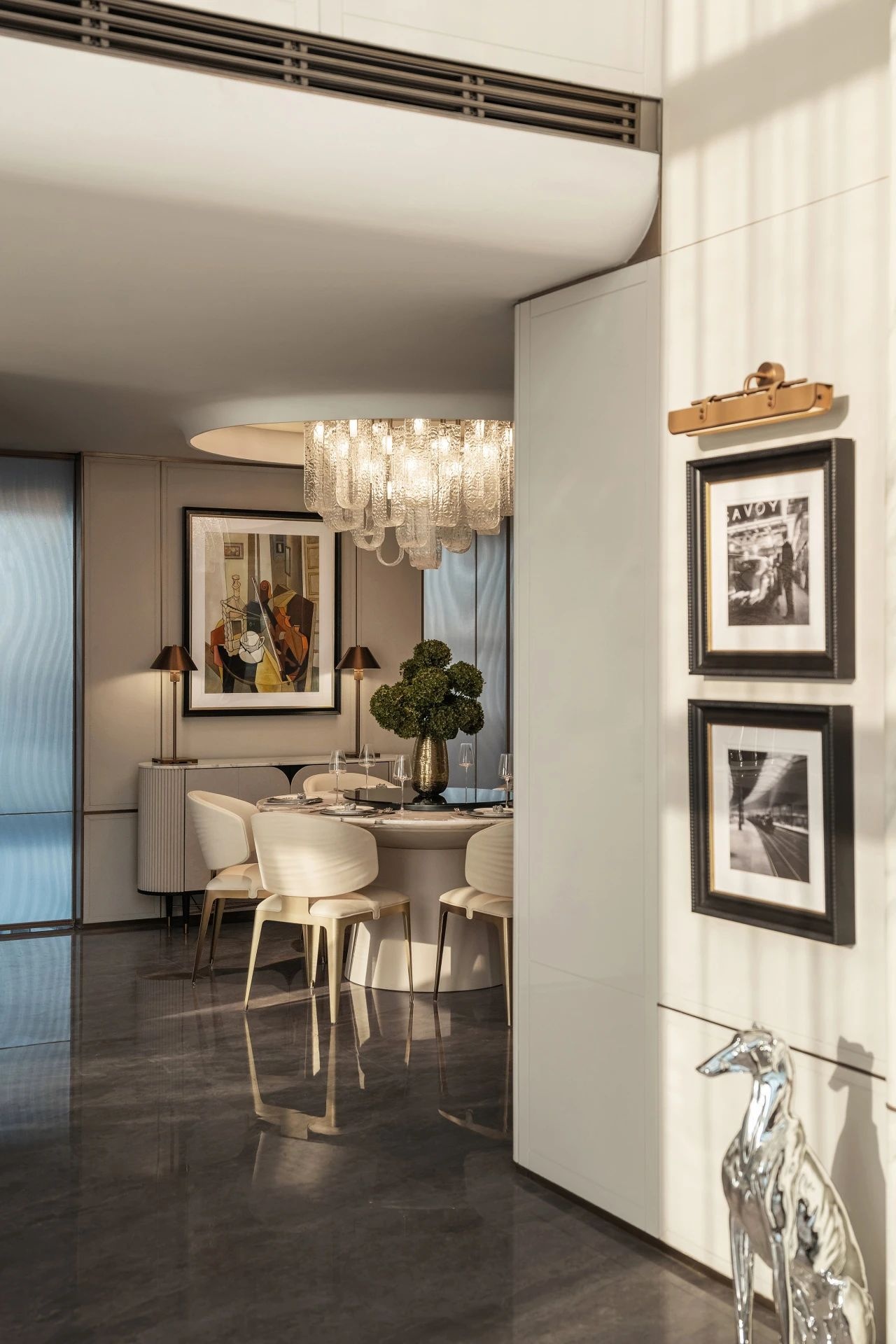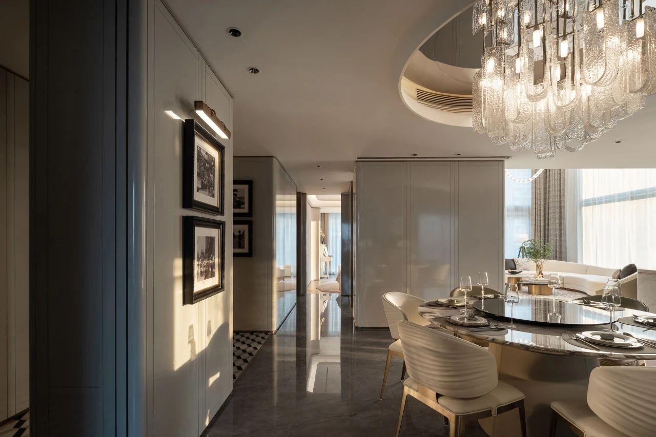 设计理念:豪宅并不是都以夸张和炫富为目的,它的设计仍从生活本身出发,以人为本,创造悦目、自在、丰富的空间体验,同时实现空间的个性、功能与个体价值观的契合。225户型有许多不同于市场上大多数大平层的空间特点,最显著的是,在平层里创造了墅感的特色。