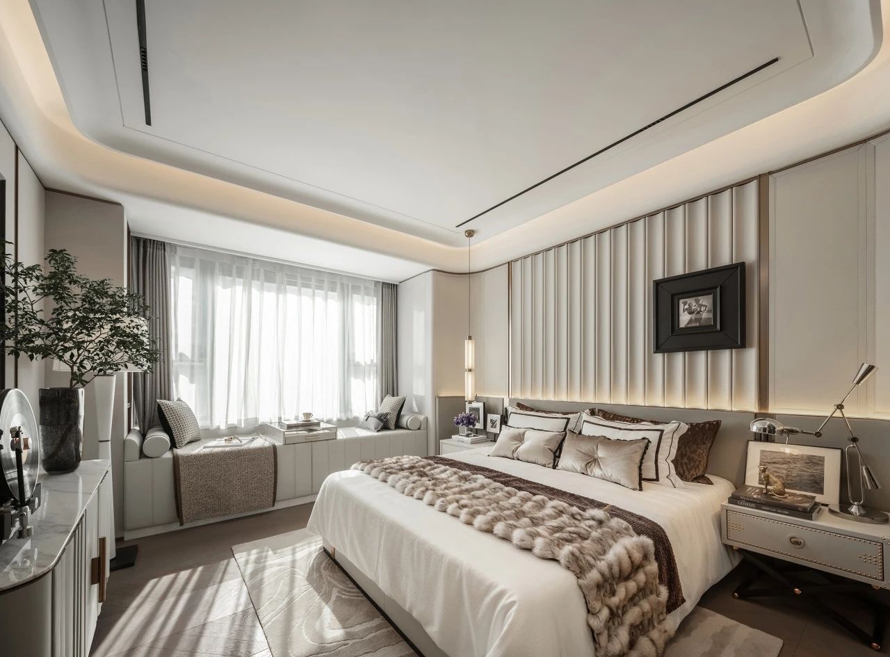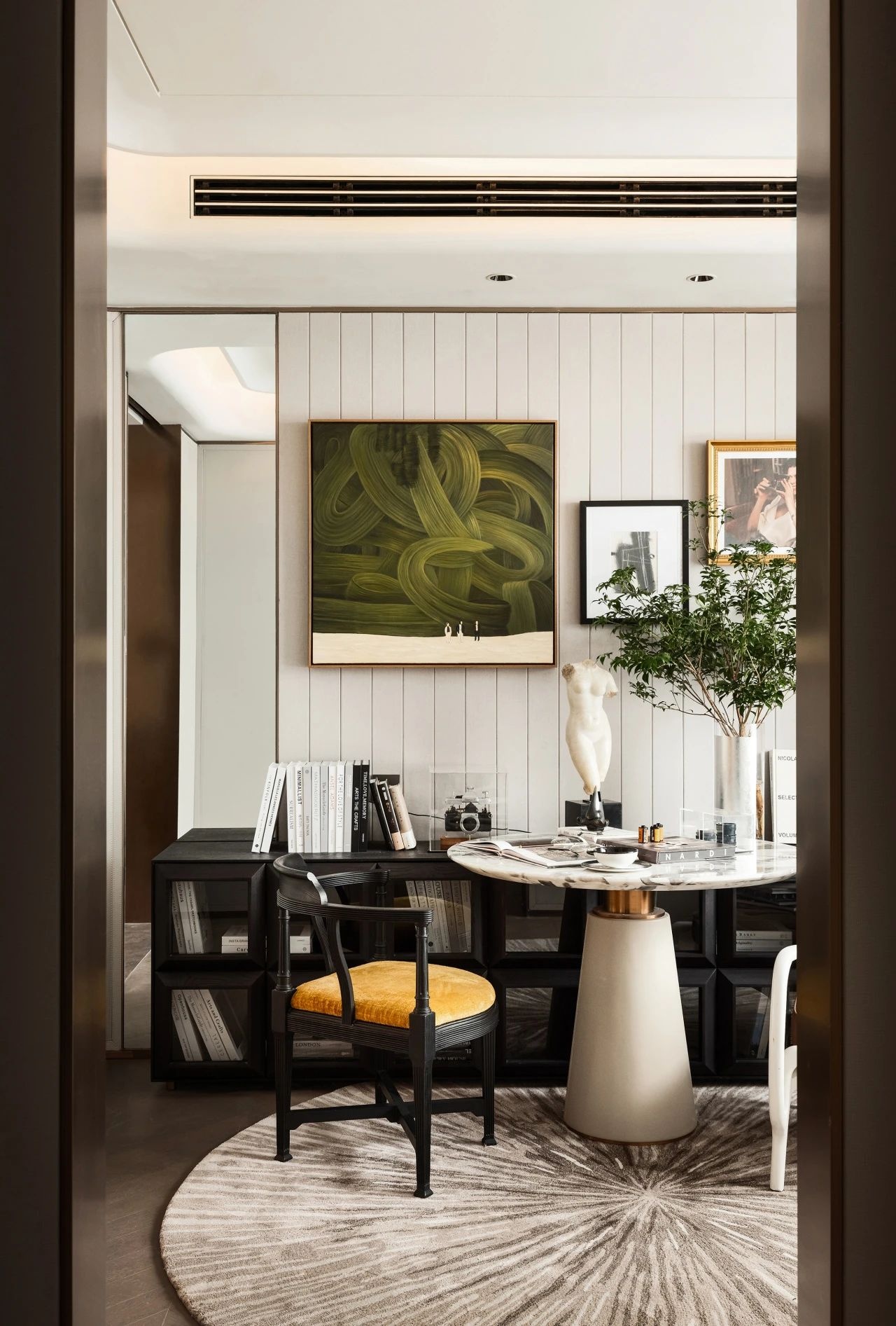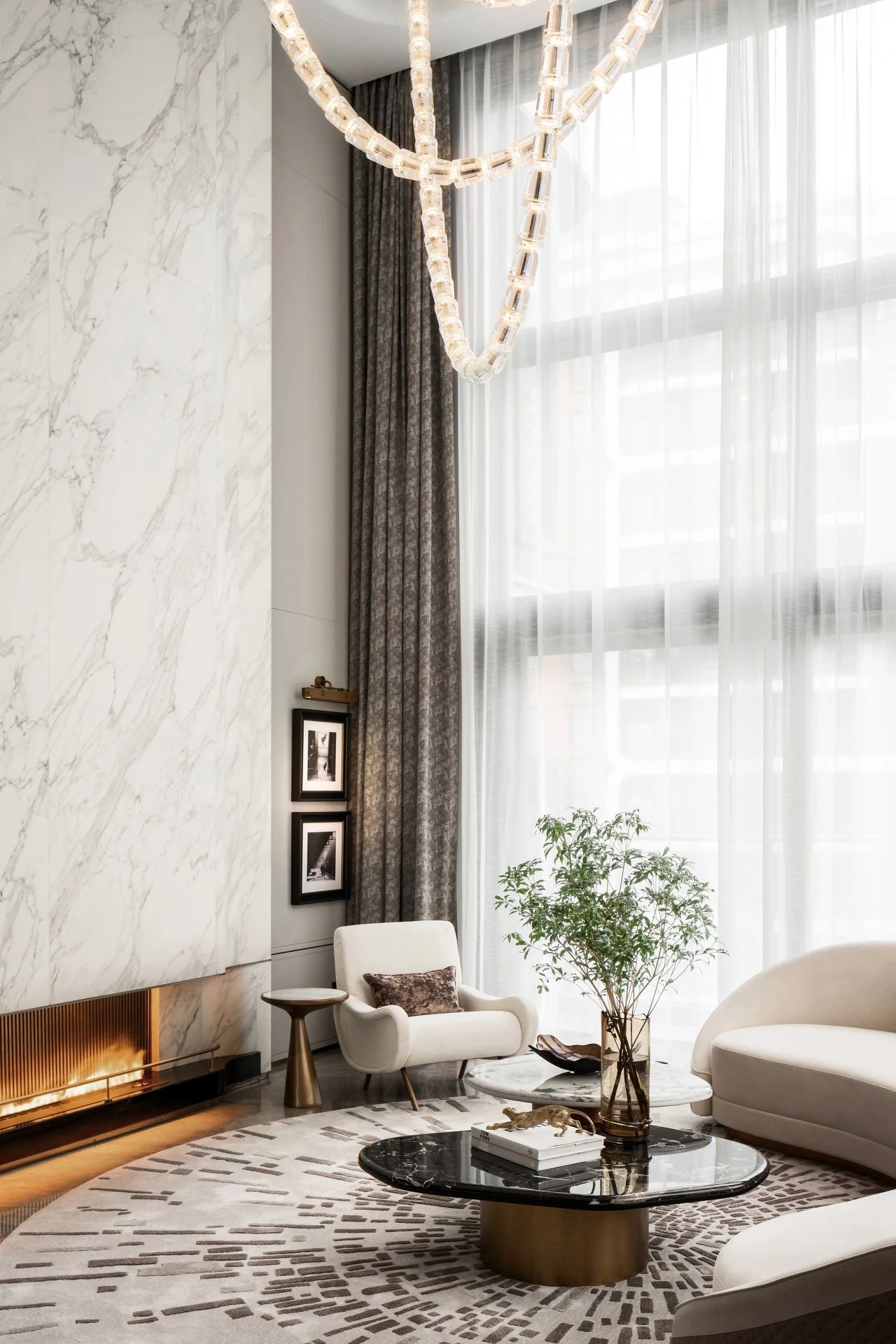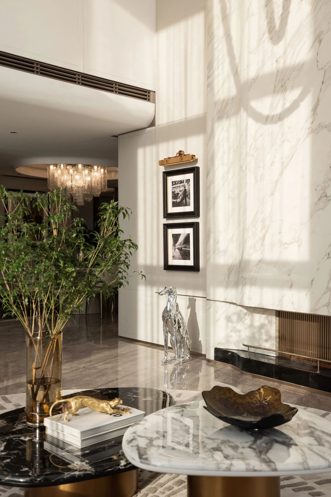 设计理念:豪宅并不是都以夸张和炫富为目的,它的设计仍从生活本身出发,以人为本,创造悦目、自在、丰富的空间体验,同时实现空间的个性、功能与个体价值观的契合。225户型有许多不同于市场上大多数大平层的空间特点,最显著的是,在平层里创造了墅感的特色。