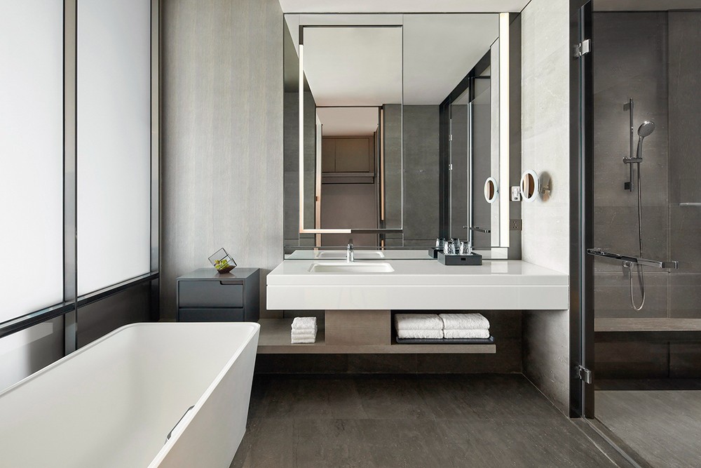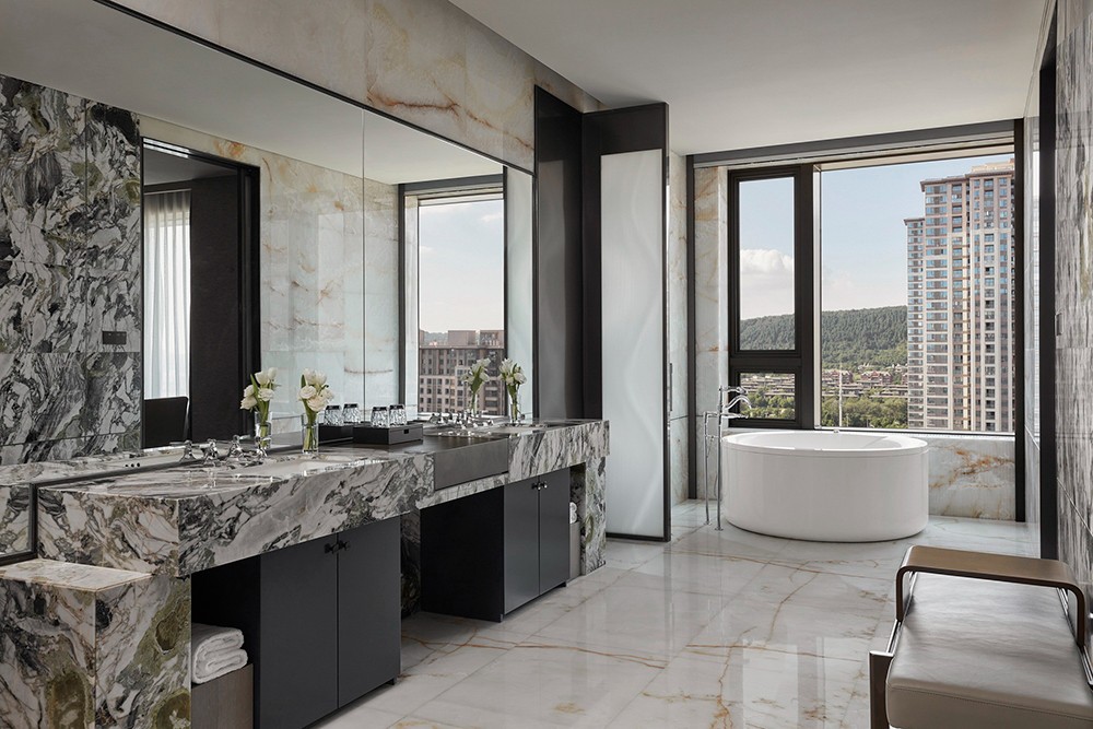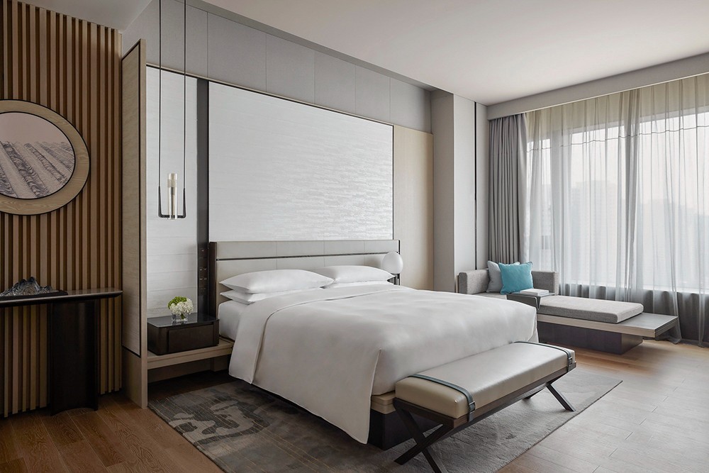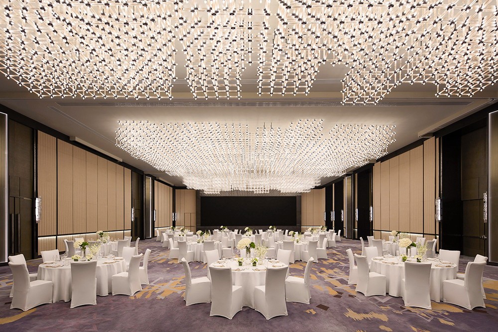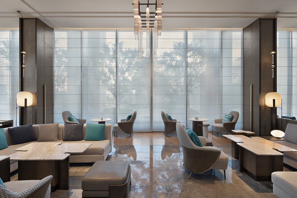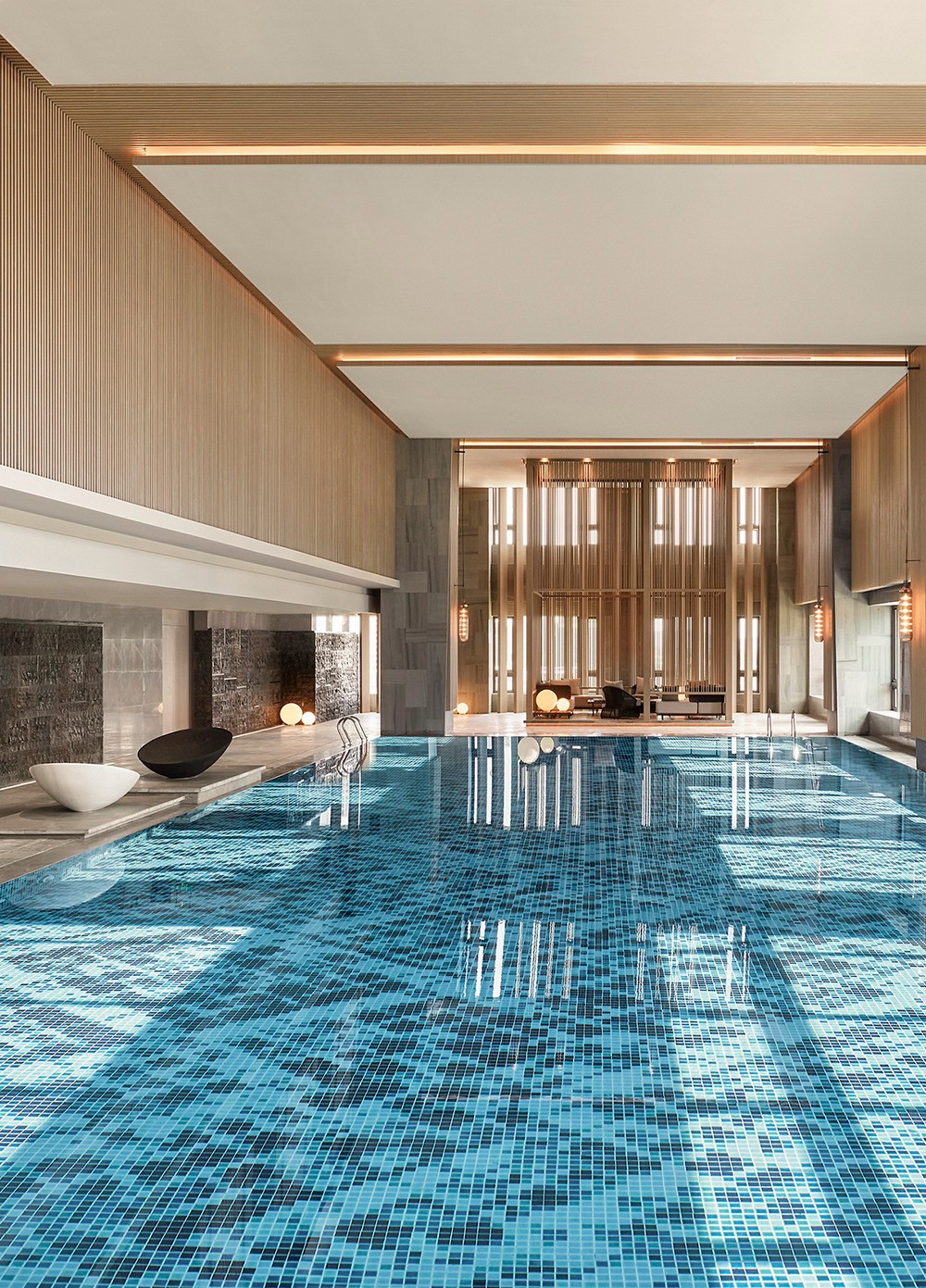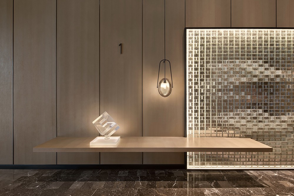 设计理念:从资源有效利用及后期运营出发,设计打通全日餐厅与特色餐厅边界,通过可分合的空间结构,灵活调节不同时段用餐人流的变化。中餐厅以大理石、皮革、木材质的自然质感与纹理打底,塑造出从容优雅的空间力量,与大国匠者身上内敛朴实的气质不谋而合。墙体特意做的对称分缝,则直接让建筑工艺为空间做装饰。包房兼顾沉稳典雅气质,却又别具风味。跳跃的色彩增添了空间活力,由碎瓦拼接而成的墙面艺术装饰,则使人产生无限想象。阵列式设计语言延续至此,穿插结构的栅格屏风,取意建筑“脚手架”元素,致敬每一个伟大创意的落地。