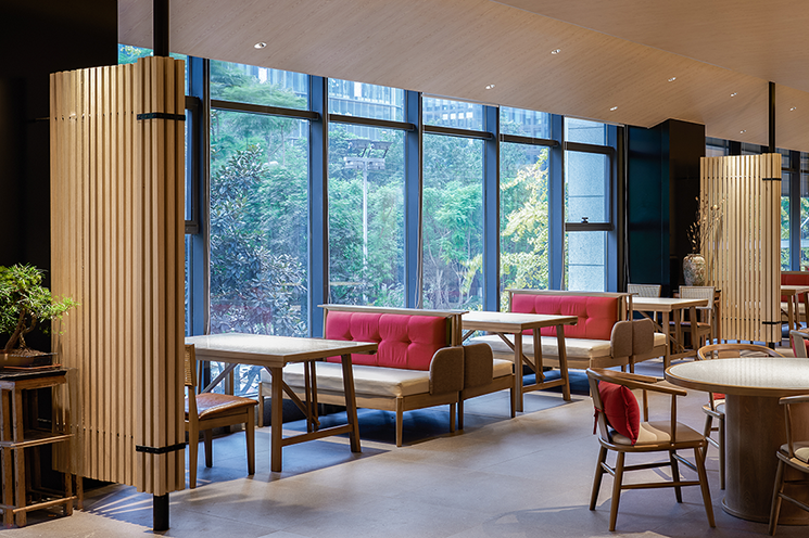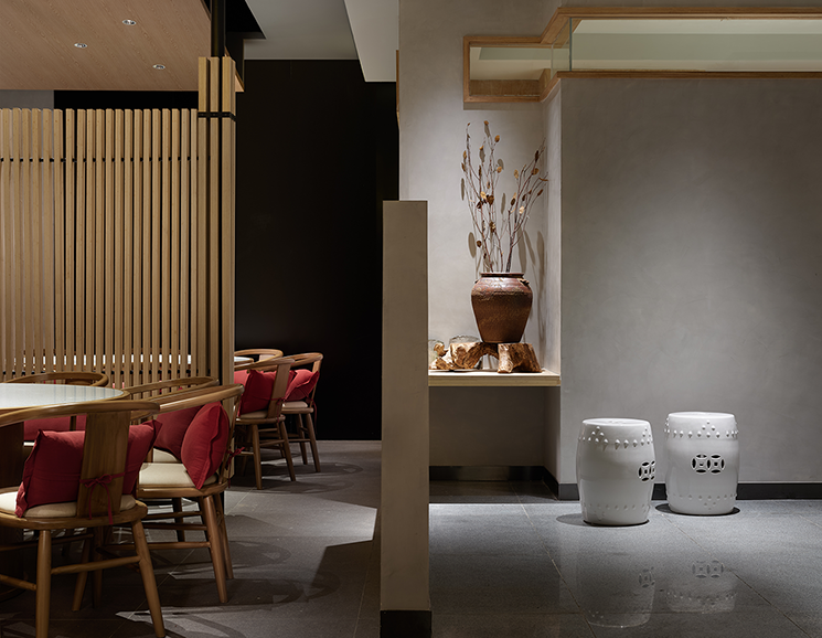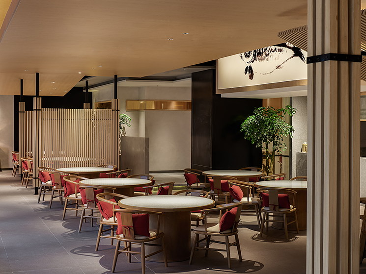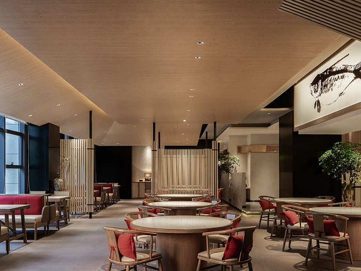 设计理念:餐厅装修设计兼顾功能性与美学表达,同时融合现代技术与文化传承。解决餐区收纳需求,避免物品堆积影响餐桌的多功能使用,通过品牌调性与空间设计强化顾客情感链接。