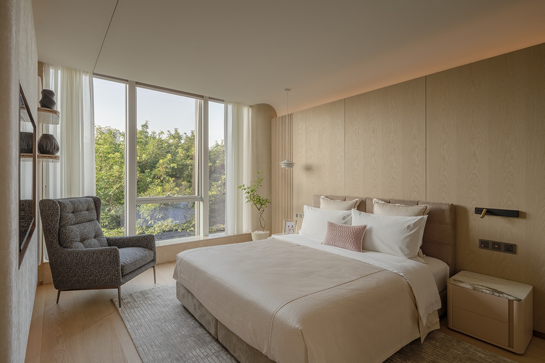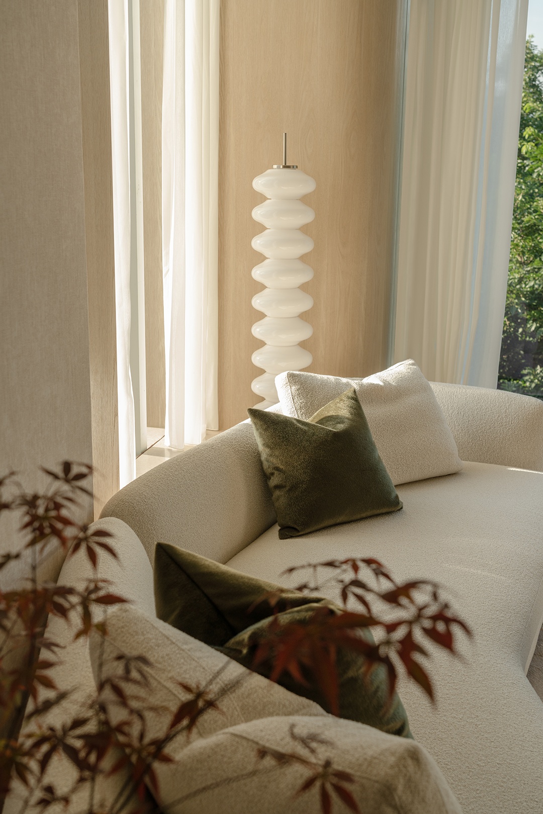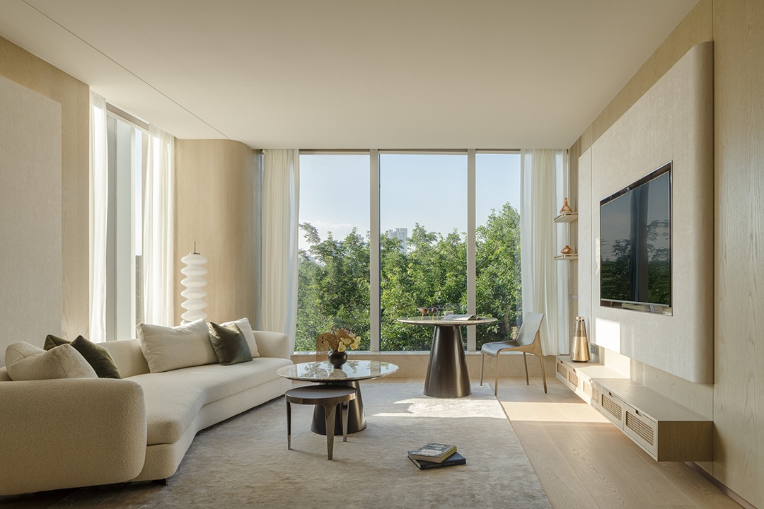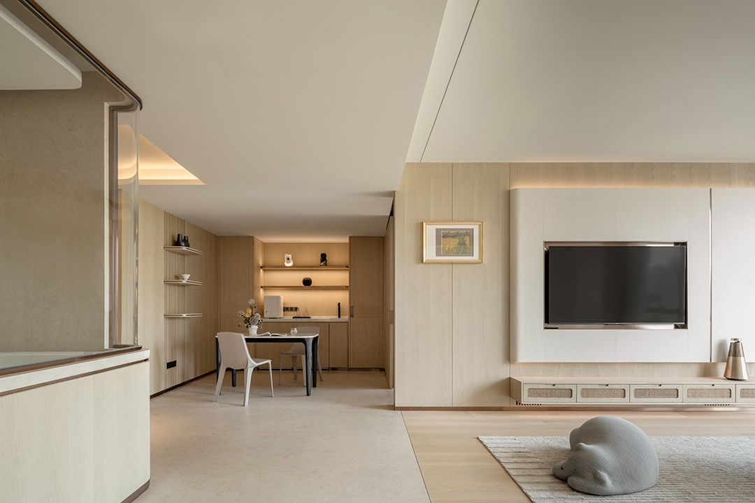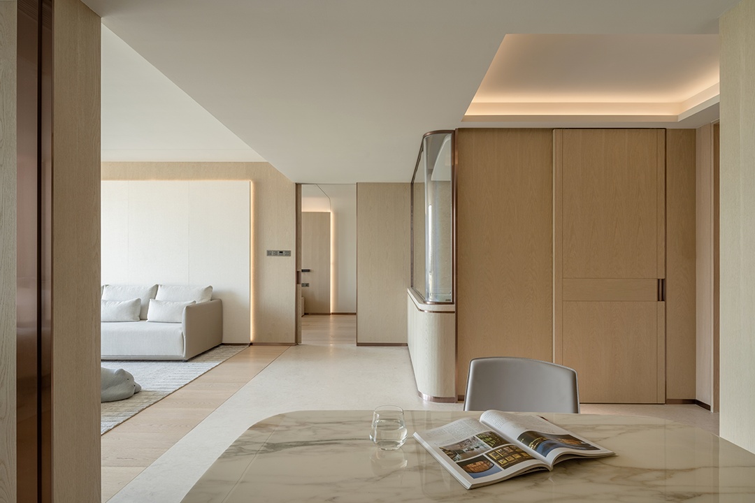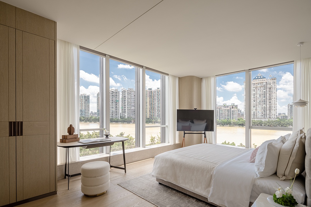 设计理念:遵循探索空间更多可能性的原则,从建筑、景观再到室内,尊重自然环境,并尝试将二沙岛这独特可贵的自然景色引入室内,让生活居所离自然更进一步,感受纯粹的身心放松和疗愈方式。大落地玻璃窗将外部的自然风景打开并化呈现,这是再多的人工配饰也无法比拟的。绿色代表着孕育生命与希望,带来平静的情绪,创造放松的基调,十分适合拥有新生儿和新生活的温暖新家。